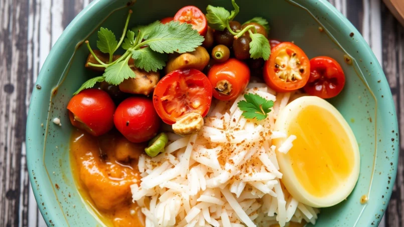 Les plats végétariens simples (riz, racines, légumes, lait de coco) sont courants, mais les sauces contiennent souvent du poisson ou des produits animaux. Les végans doivent donc préciser clairement leurs attentes.