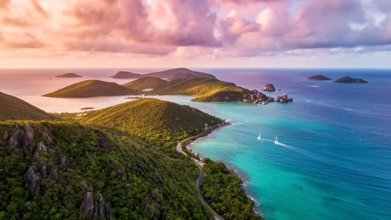 Nichées entre la mer des Caraïbes et l’Atlantique nord, les Îles Vierges britanniques forment un territoire insulaire minuscule par la taille mais d’une complexité géographique étonnante. Volcans éteints, îles coralliennes rasantes, récifs géants, mangroves, collines couvertes de forêts sèches et de forêts humides, relief accidenté, climat tropical très régulier mais exposé aux ouragans : l’archipel condense sur à peine 150 km² une diversité de paysages rarement égalée dans la Caraïbe.