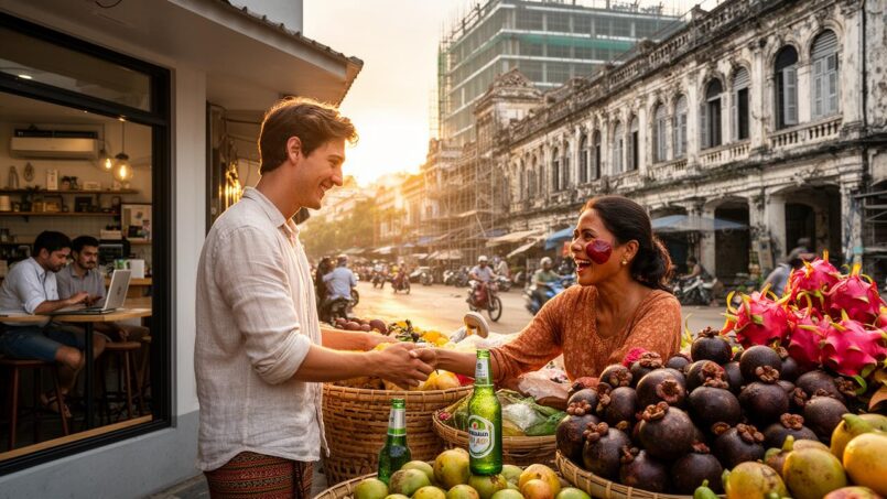 La Birmanie est régulièrement citée comme l’un des pays les moins chers d’Asie. Comparée à Bangkok, Rome ou Toronto, Yangon apparaît nettement plus abordable sur la plupart des postes de dépense, même si les écarts se resserrent avec d’autres capitales régionales comme Kuala Lumpur ou Phnom Penh.