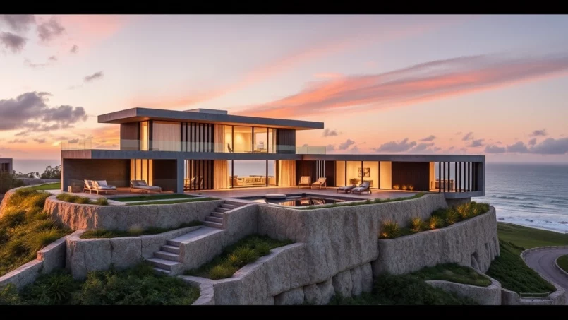 Un trait distinctif du marché de luxe uruguayen, particulièrement visible à José Ignacio, tient à la qualité architecturale. Beaucoup de villas sont signées par des architectes de renom comme Martín Gómez, Diego Montero, Mario Connio ou encore des studios argentins et brésiliens d’envergure. L’esthétique dominante privilégie la fusion avec l’environnement : structures en pierre brute, ossatures bois, façades largement vitrées, toits végétalisés, patios intérieurs, grandes terrasses orientées vers l’océan ou la lagune.